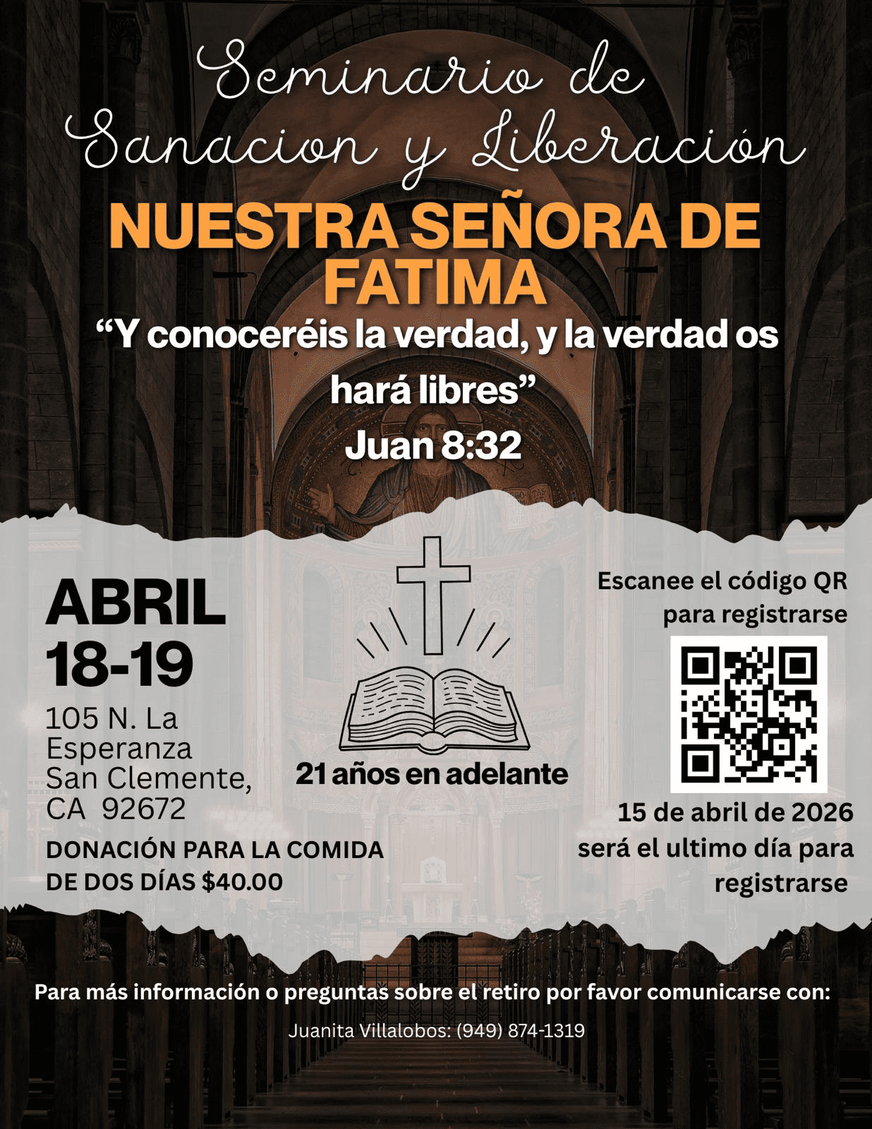 Anointing of the Sick and Eucharist may be arranged by contacting the Parish Office at 949-492-4101.