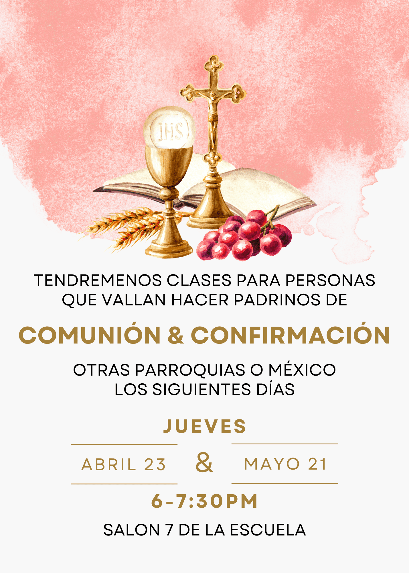Diariamente en la Capilla del Santísimo Sacramento. Contacte a la Oficina Parroquial para después del horario.